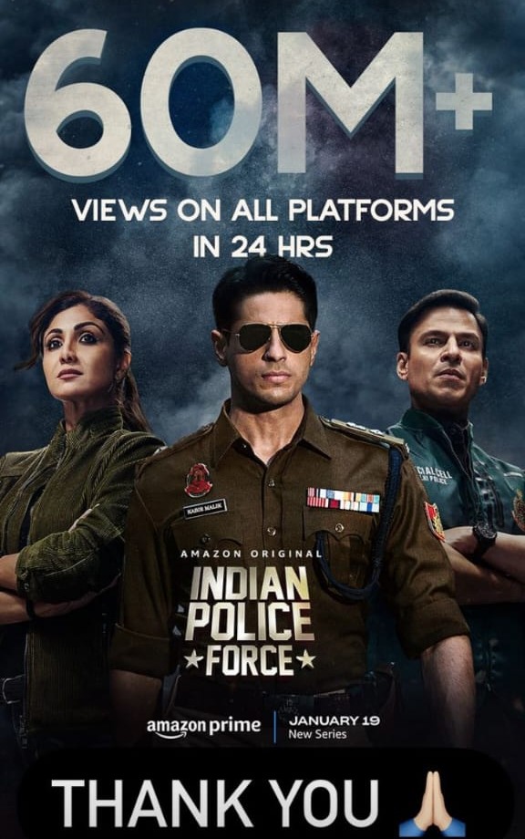 घर पर बड़े स्क्रीन अनुभव का वादा करते हुए, इंडियन पुलिस फोर्स के टीज़र को सभी माध्यमों से अभूतपूर्व प्रतिक्रिया मिली है। टीजर ने 24 घंटों में सभी प्लेटफार्मों पर आश्चर्यजनक रूप से 60 मिलियन से अधिक व्यूज हासिल किए हैं। दर्शकों को रोहित शेट्टी की रचना के वास्तविक सार को प्रदर्शित करने वाले पावर-पैक दृश्य और एक्शन स्केल पसंद आए हैं।